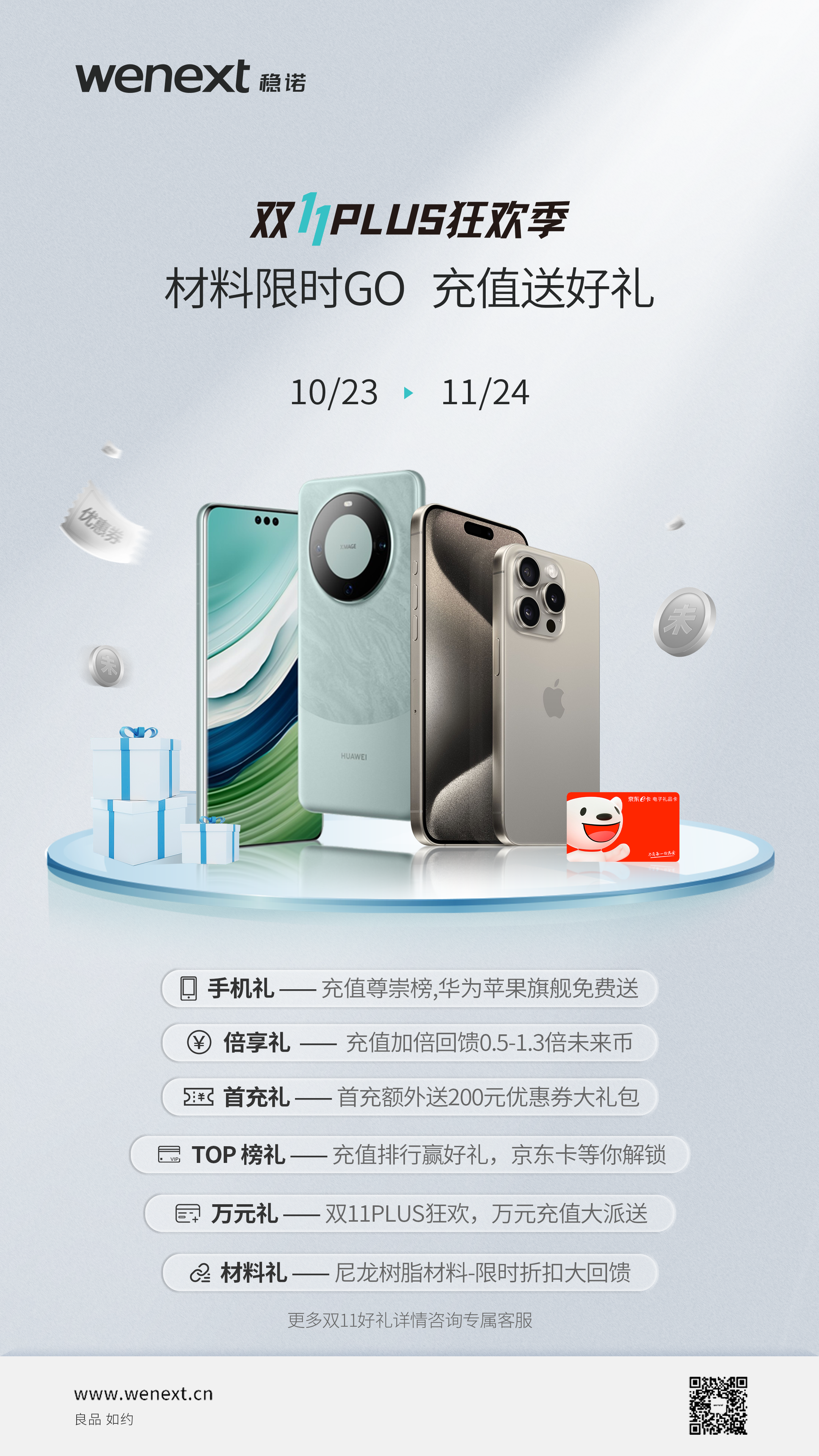 双11 PLUS狂欢季 │ 材料限时GO 充值送好礼